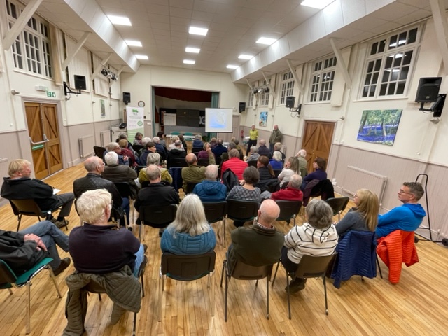The audience also heard from three local householders Lesley, Alex and Barry, who spoke about their experiences. Between them they covered the use of solar panels and battery storage, putting renewable technology into a new build and retrofitting solar panels and an air source heat pump in an older farmhouse. The message from all three was how effective the technology is and that ‘if you can – you should’ because individual actions really do make a difference.