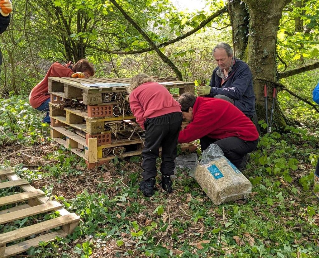 The participants rolled up their sleeves to learn how to build wildlife-friendly features including a bug hotel, hibernaculum, hedgehog house, and bat box. These creations will remain in one of Vyner Park’s wooded areas, providing shelter for local wildlife.