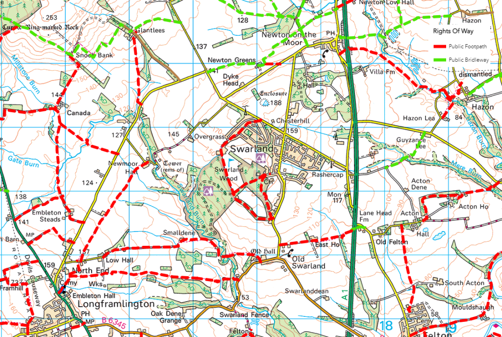 You can find details of public rights of way in and around the parish by exploring the Public Rights of Way map produced by Northumberland County Council, see below, and at Public Rights of Way (arcgis.com)